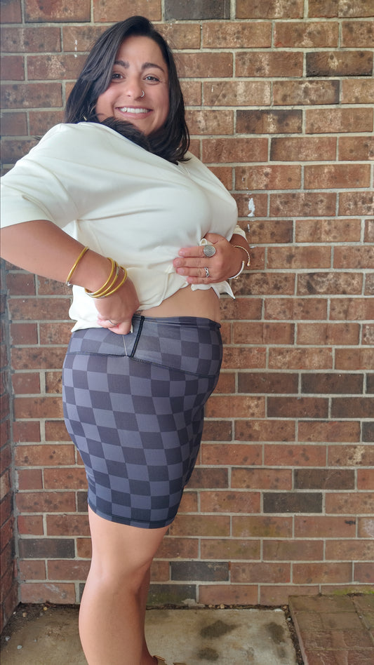 Rooted in Comfort Biker Shorts- Black Check