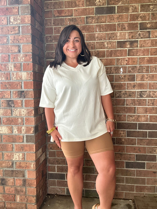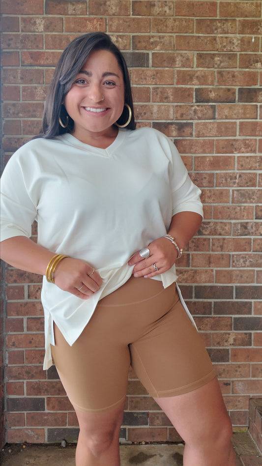 Rooted in Comfort Biker Shorts- Tan